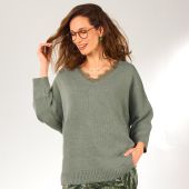 Ambiance nature mêlant authenticité et modernité… pour les aventurières dans l’âme, qui veulent rester féminines ! Osez donc le camaïeu de vert pour une allure camouflage totalement dans le vent, et si facile à porter ! Le tee-shirt souple en maille de belle tenue saura vous séduire avec son décolleté en dentelle festonnée, un brin sexy juste ce qu’il faut. Combiné au pull ample aux manches chauve-souris à l’effet légèrement chiné et au toucher tout doux, l’effet 2 en 1 sera tout simplement bluffant. Vous pourrez barouder comme bon vous semble en pantalon extensible à la taille élastiquée, ainsi qu’en boots en cuir velours à semelle crantée qui s’enfilent facilement grâce à leur zip intérieur. Très pratique au quotidien, cette tenue reste mode et féminine de haut en bas, grâce au décolleté dentelle, à l’imprimé feuillage délicat du pantalon, et aux boots à boucle dorée.
