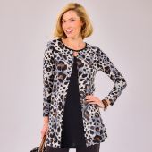 Tenue léopard : tunique imprimé sur pantalon classique noir
